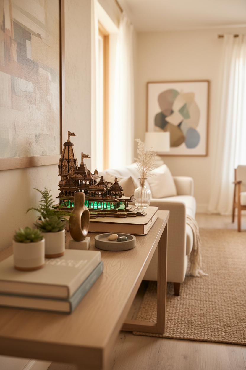 A magnificent 3D miniature model of the sacred Shri Ram Janmabhoomi Mandir in Ayodhya, designed to bring a spiritual and cultural accent to your home or office.